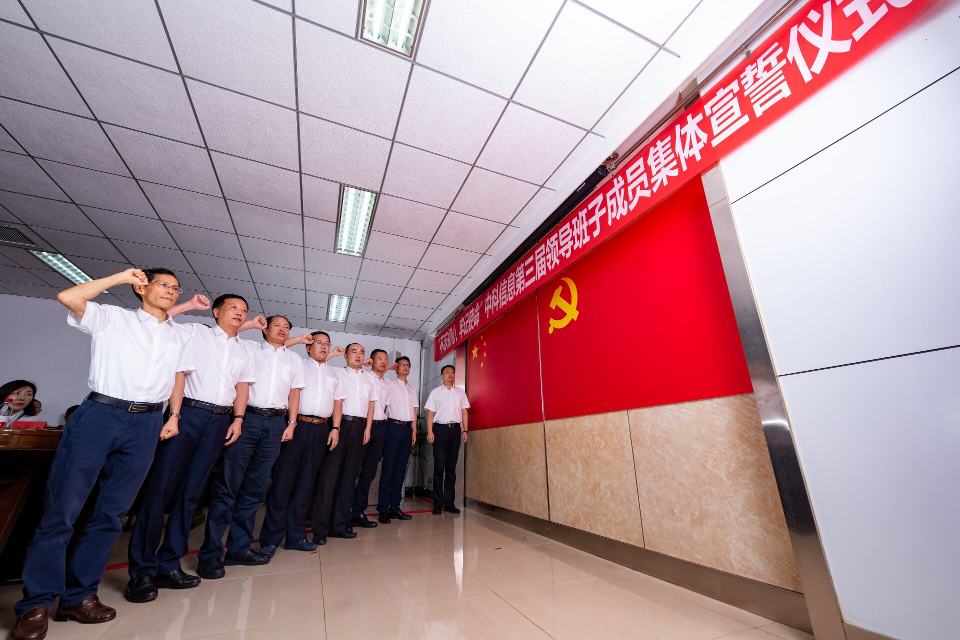 9月2日下午,為結(jié)合公司“不忘初心、牢記使命”主題教育階段性成果,進一步強化領(lǐng)導(dǎo)班子全體成員實現(xiàn) “二次創(chuàng)業(yè)”的責任感和使命感,以昂揚奮進的精神面貌,在公司全體干部員工中做出表率,中科院成都信息技術(shù)股份有限公司(以下簡稱“中科信息”)舉行了第三屆領(lǐng)導(dǎo)班子成員集體宣誓儀式。在鮮艷的國旗與黨旗前,公司第三屆領(lǐng)導(dǎo)班子全體成員身著正裝,精神抖擻,在公司黨委委員、紀委委員、全體中層干部以及部分職代會代表和員工代表的見證下,進行莊嚴的集體宣誓。儀式由黨委副書記、紀委書記王偉主持。