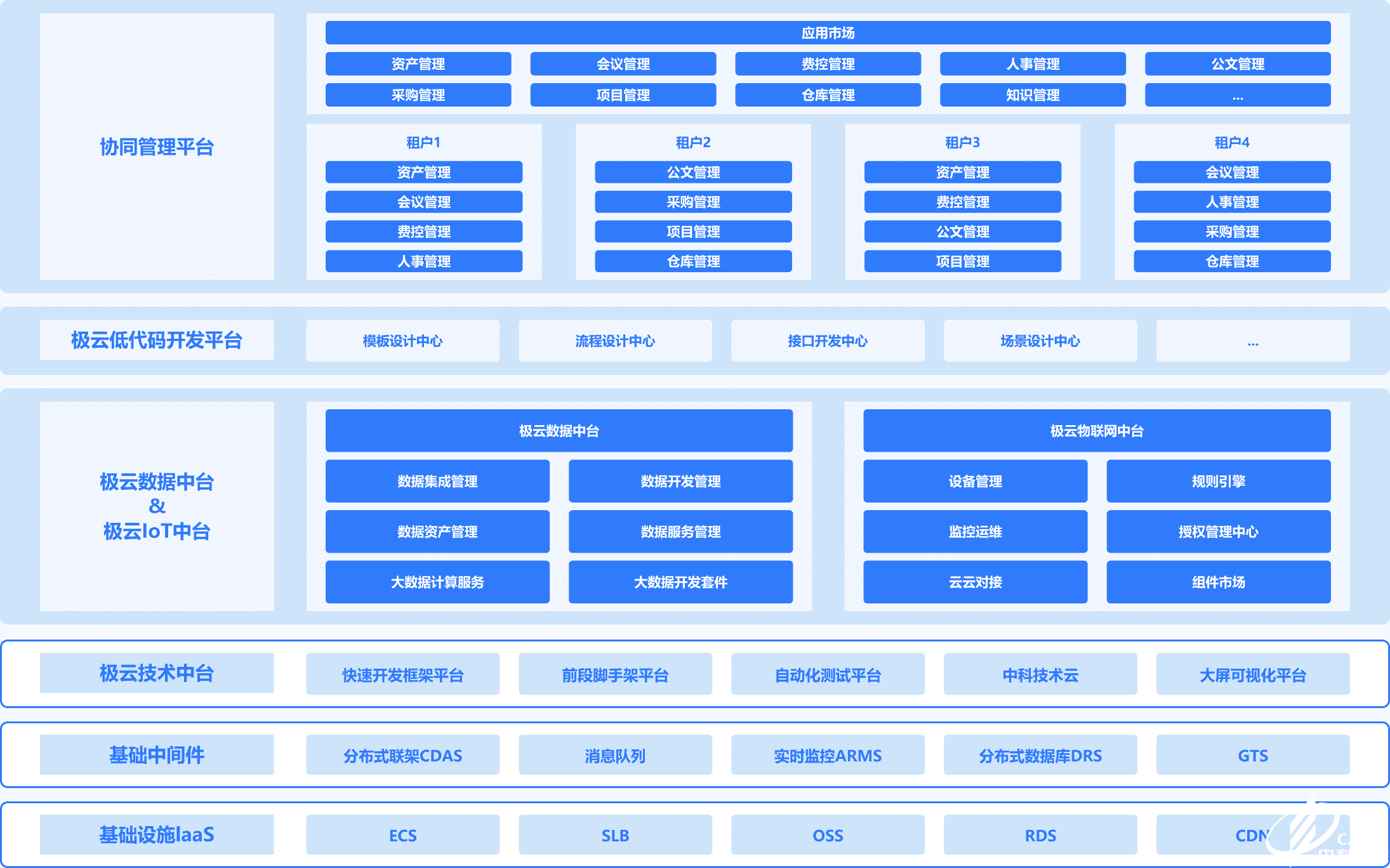 中科極云平臺(tái)是一款具有完全自主知識(shí)產(chǎn)權(quán)的企業(yè)級(jí)通用服務(wù)開發(fā)平臺(tái),包括:極云協(xié)同管理平臺(tái)、極云低代碼開發(fā)平臺(tái)、極云數(shù)據(jù)中臺(tái)、極云物聯(lián)網(wǎng)中臺(tái)和極云技術(shù)中臺(tái),是由中科院成都信息技術(shù)股份有限公司基于多年面向行業(yè)化的軟件工程、軟件平臺(tái)、軟件開發(fā)技術(shù)的研究應(yīng)用沉淀整合而來(lái)。平臺(tái)采用微服務(wù)、云計(jì)算、大數(shù)據(jù)、流程引擎、統(tǒng)一認(rèn)證等先進(jìn)技術(shù),提供常用的軟件開發(fā)框架及組件庫(kù),將軟件信息化需求抽象成標(biāo)準(zhǔn)的流程、數(shù)據(jù)模型,采用低代碼可視化配置開發(fā)的方式,提供了支持跨平臺(tái)的通用軟件開發(fā)能力。