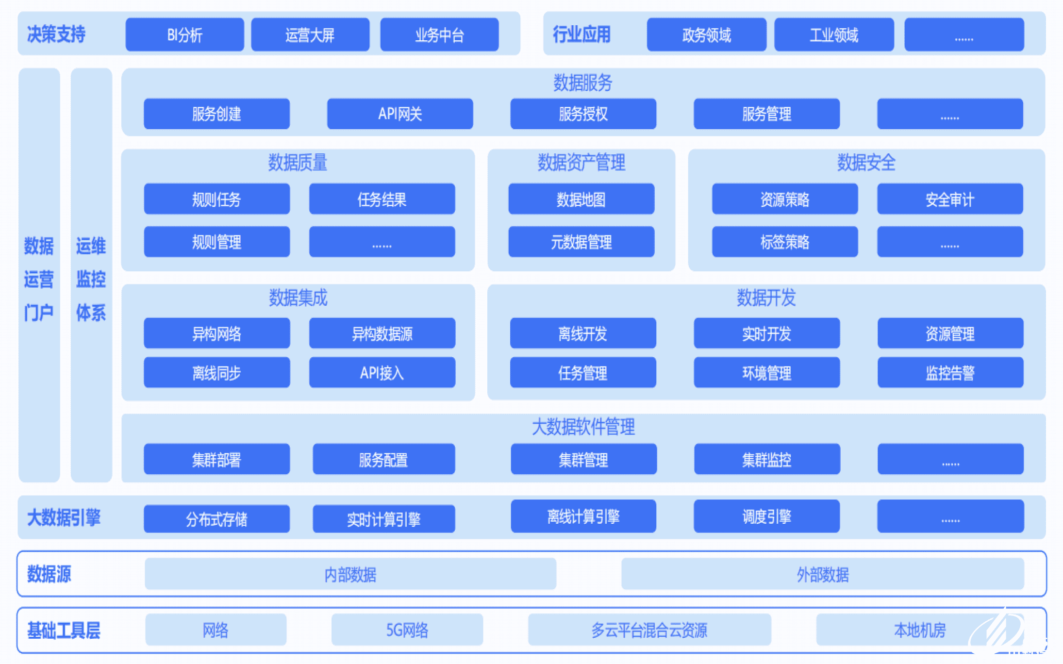 極云數(shù)據(jù)中臺(tái)將大數(shù)據(jù)應(yīng)用開發(fā)作為基礎(chǔ)設(shè)施,將海量數(shù)據(jù)進(jìn)行采集、 計(jì)算、存儲(chǔ)、加工,同時(shí)建立統(tǒng)一標(biāo)準(zhǔn)和口徑。通過(guò)數(shù)據(jù)治理形成數(shù)據(jù)資產(chǎn),進(jìn)而向 上支撐應(yīng)用,提供高效的服務(wù)。同時(shí)減少數(shù)據(jù)重復(fù)建設(shè)、又降低煙囪式協(xié)作的成本, 為企業(yè)的業(yè)務(wù)創(chuàng)新持續(xù)賦能