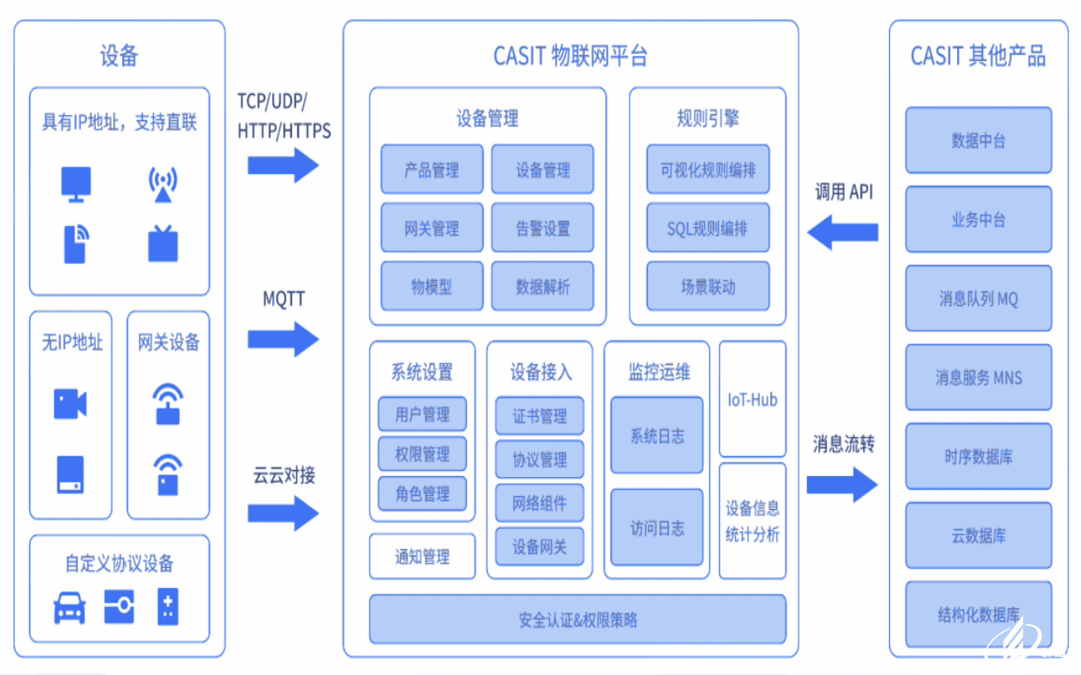 極云物聯(lián)網(wǎng)中臺(tái)是一個(gè)企業(yè)級(jí)物聯(lián)網(wǎng)基礎(chǔ)開發(fā)平臺(tái),可實(shí)現(xiàn)物聯(lián)網(wǎng)業(yè)務(wù)開發(fā)的眾多基礎(chǔ)功能,幫助企業(yè)快速建立物聯(lián)網(wǎng)相關(guān)業(yè)務(wù)系統(tǒng)。平臺(tái)集成了設(shè)備管理、數(shù)據(jù)安全通信和消息訂閱等能力,向下支持海量設(shè)備連接,采集設(shè)備數(shù)據(jù)上云;向上提供云端API,服務(wù)端可通過(guò)調(diào)用云端 API 將指令下發(fā)至設(shè)備端,實(shí)現(xiàn)遠(yuǎn)程控制;除此以外,平臺(tái)還提供規(guī)則引擎等功能。其中,設(shè)備接入與管理支持億級(jí)設(shè)備與云端建立安全可靠的雙向連接;可視化規(guī)則引擎提供設(shè)備與云上各產(chǎn)品之間的數(shù)據(jù)流轉(zhuǎn)。從而幫助用戶快速搭建垂直物聯(lián)網(wǎng)架構(gòu),高效實(shí)現(xiàn)場(chǎng)景化智能應(yīng)用。