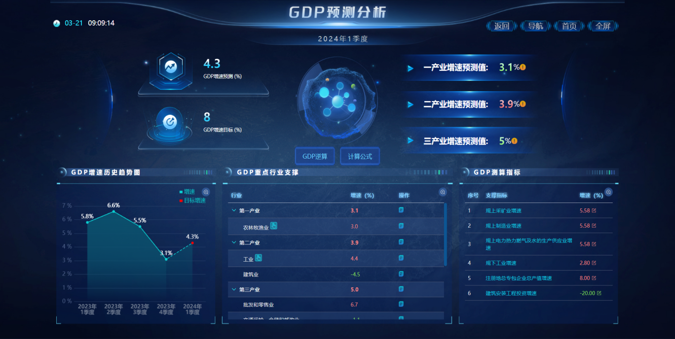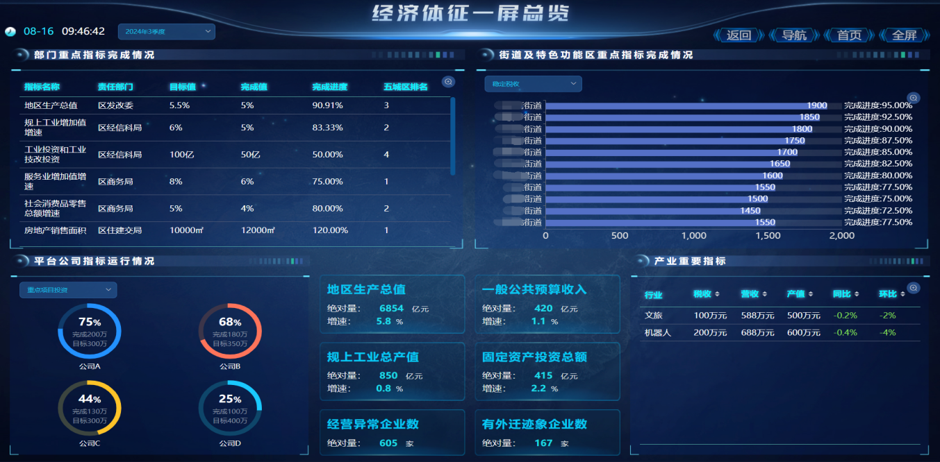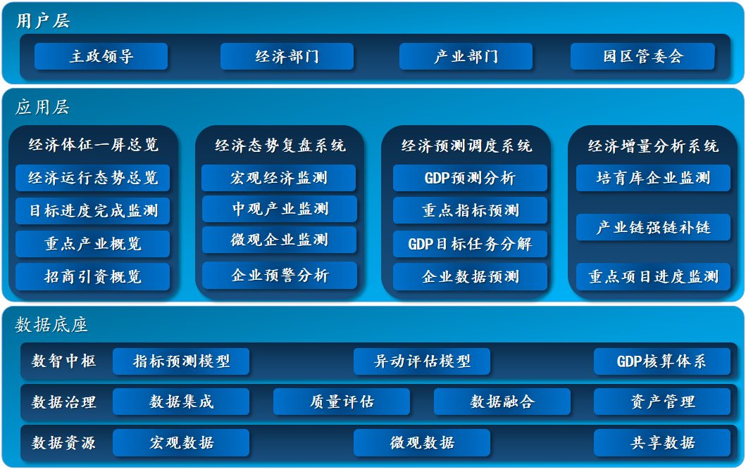 針對(duì)傳統(tǒng)的經(jīng)濟(jì)運(yùn)行調(diào)度會(huì)無法科學(xué)、直觀和深入分析經(jīng)濟(jì)形勢、對(duì)經(jīng)濟(jì)指標(biāo)監(jiān)測和研判缺少相關(guān)信息化手段支撐的需求,通過多維度對(duì)比、多元化預(yù)測算法模型、多層次數(shù)據(jù)深入挖掘方式,圍繞地方政府經(jīng)濟(jì)治理,實(shí)現(xiàn)經(jīng)濟(jì)運(yùn)行分析調(diào)度會(huì)決策科學(xué)化、信息精確化和數(shù)據(jù)直觀化。